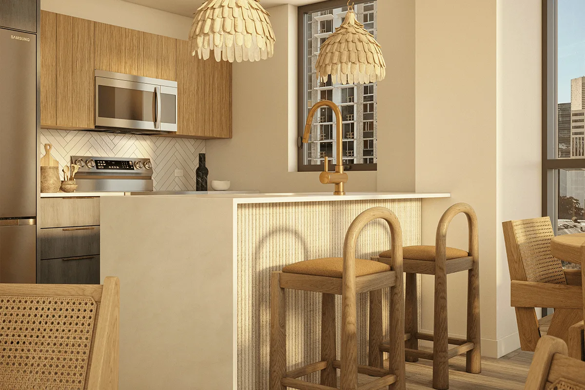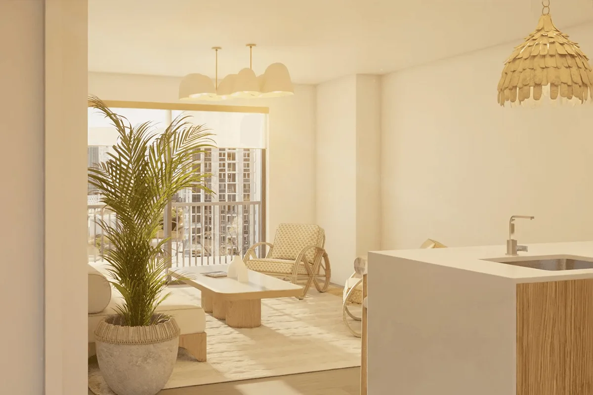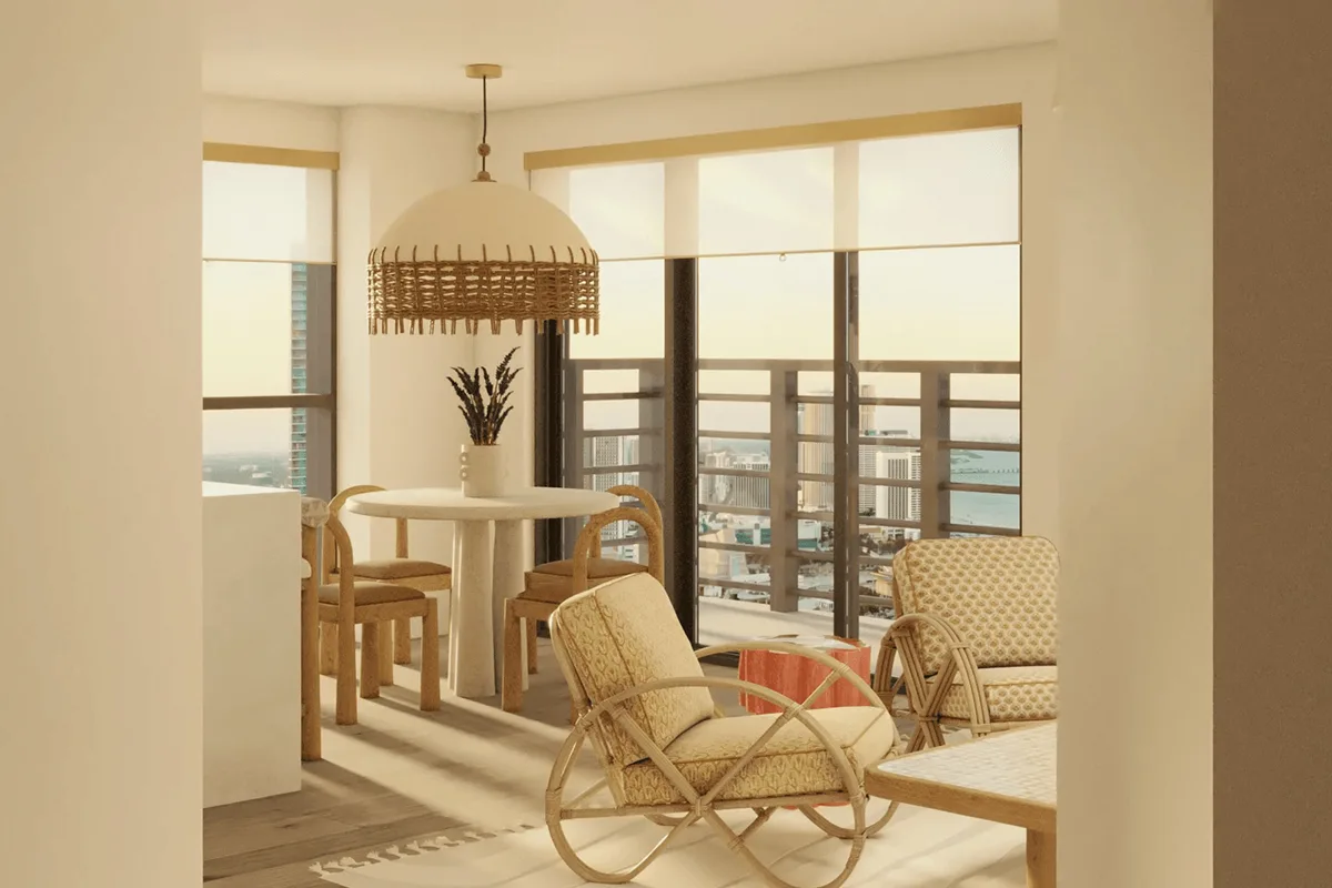 Cada residencia ha sido meticulosamente diseñada por Cola Blanca para ofrecer un equilibrio entre estilo y comodidad. Con tamaños desde 340 hasta 1,046 pies cuadrados, los espacios se adaptan a un estilo de vida sofisticado, destacando acabados premium, distribución inteligente y ventanales de piso a techo.