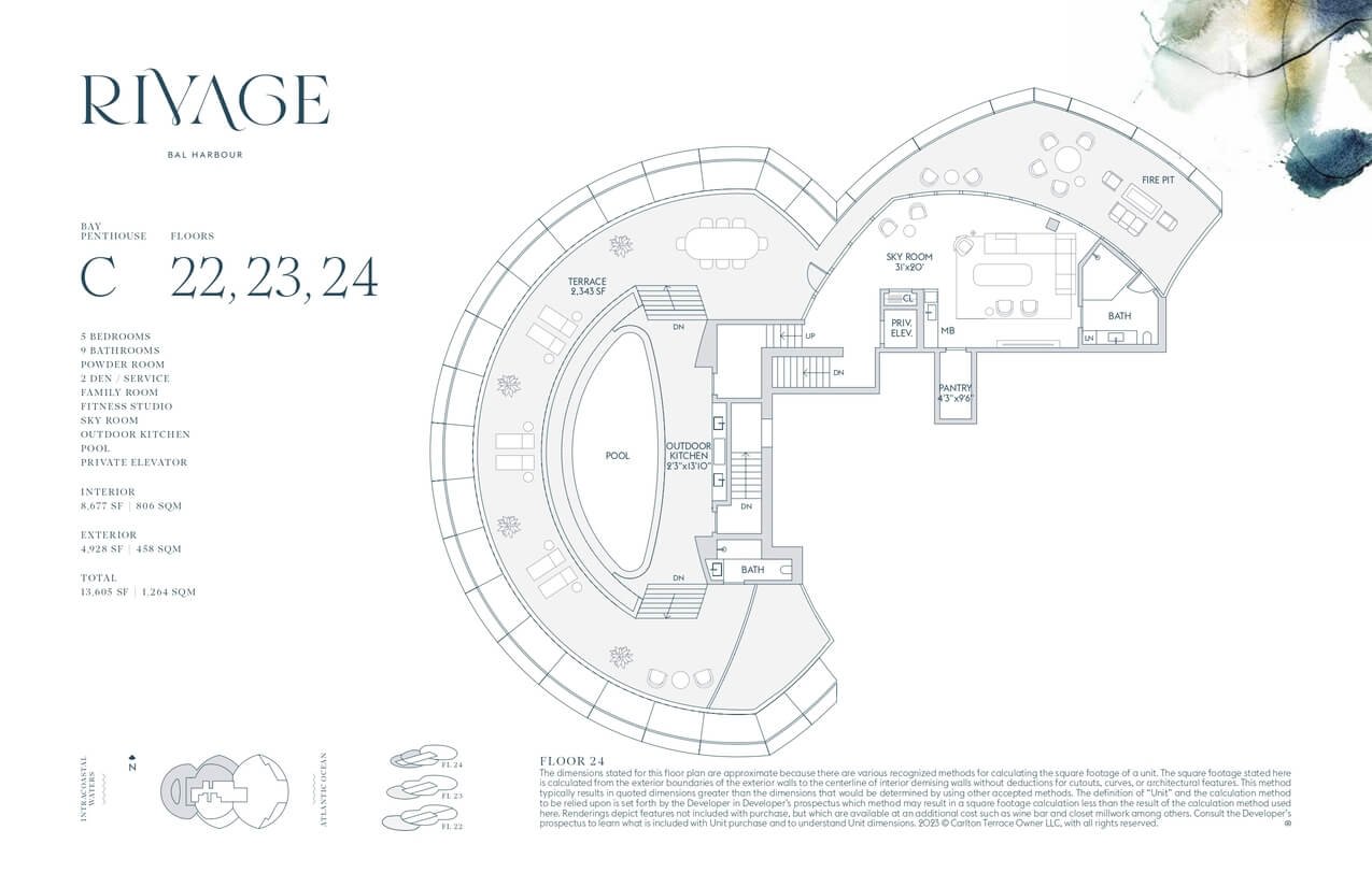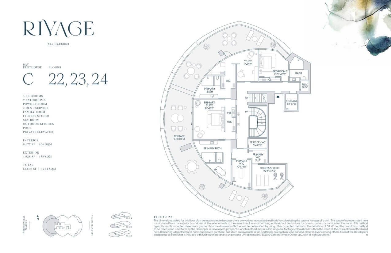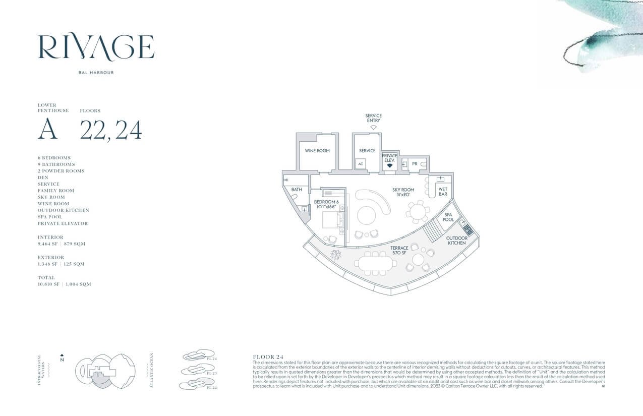 Cada residencia en Rivage Bal Harbour cuenta con acceso privado por elevador, terrazas de hasta 12 pies y ventanales de piso a techo con vistas espectaculares. Las cocinas personalizadas integran electrodomésticos Sub-Zero y Wolf, mientras que los baños, diseñados por Rottet Studio, destacan por acabados en mármol, travertino y madera de roble blanco, brindando un ambiente de refinada elegancia.