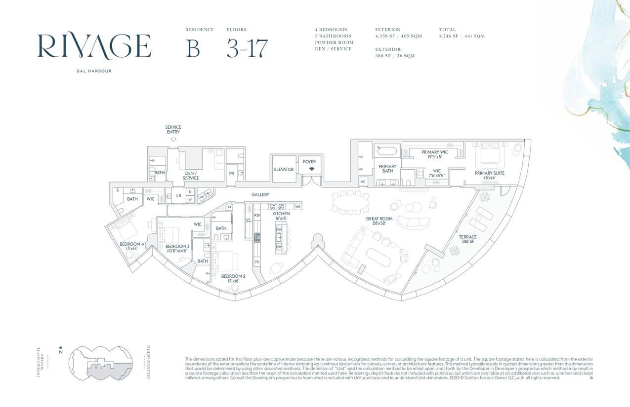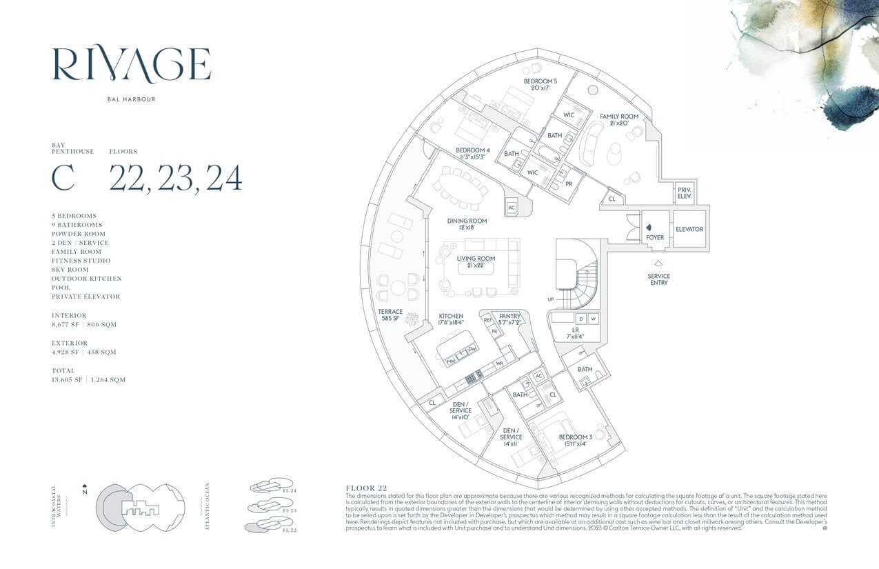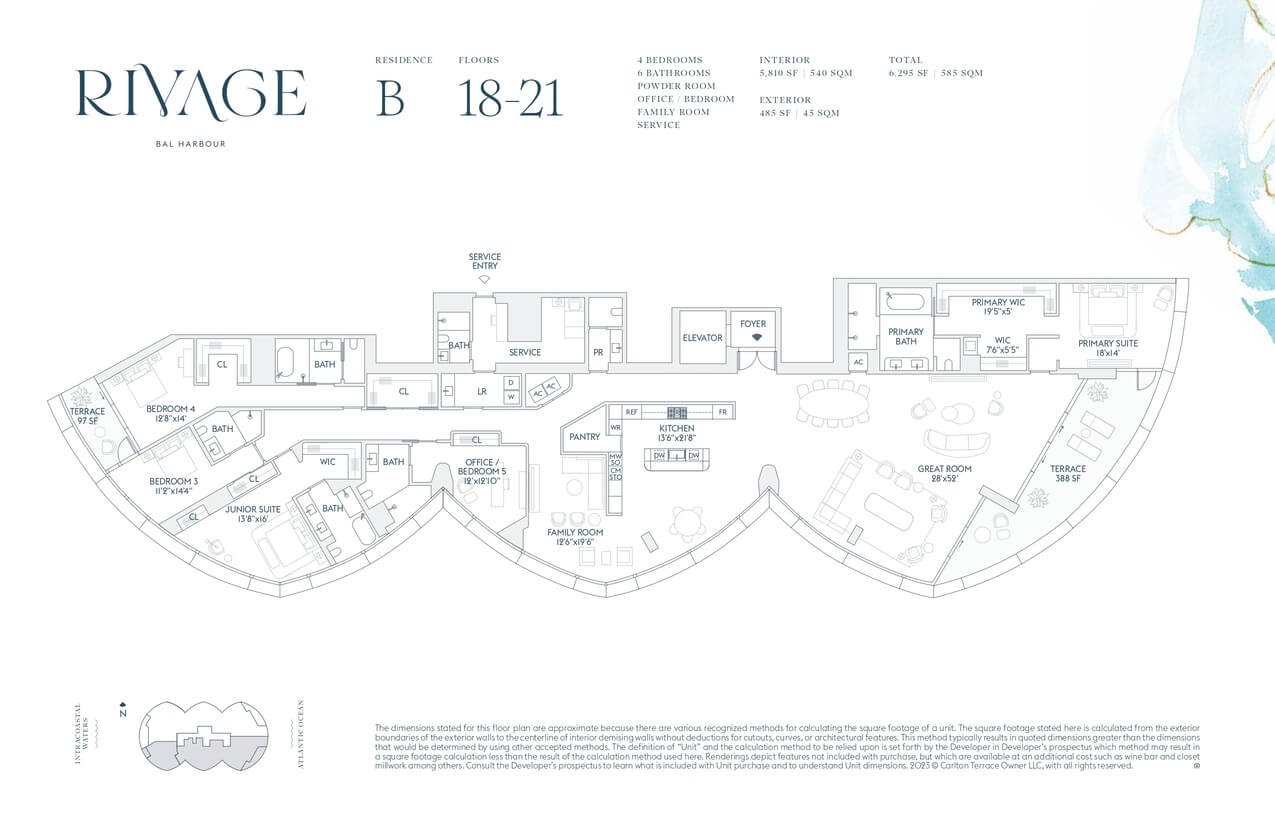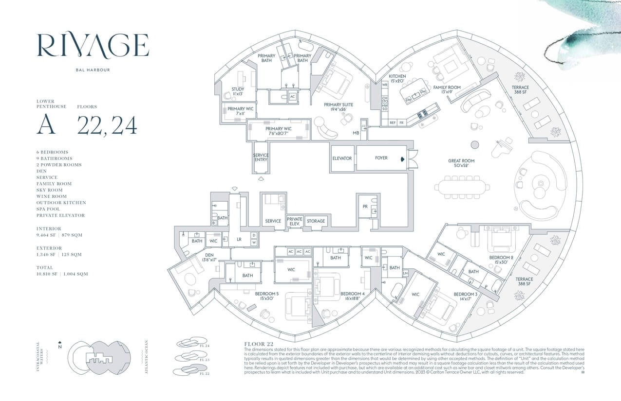 Cada residencia en Rivage Bal Harbour cuenta con acceso privado por elevador, terrazas de hasta 12 pies y ventanales de piso a techo con vistas espectaculares. Las cocinas personalizadas integran electrodomésticos Sub-Zero y Wolf, mientras que los baños, diseñados por Rottet Studio, destacan por acabados en mármol, travertino y madera de roble blanco, brindando un ambiente de refinada elegancia.