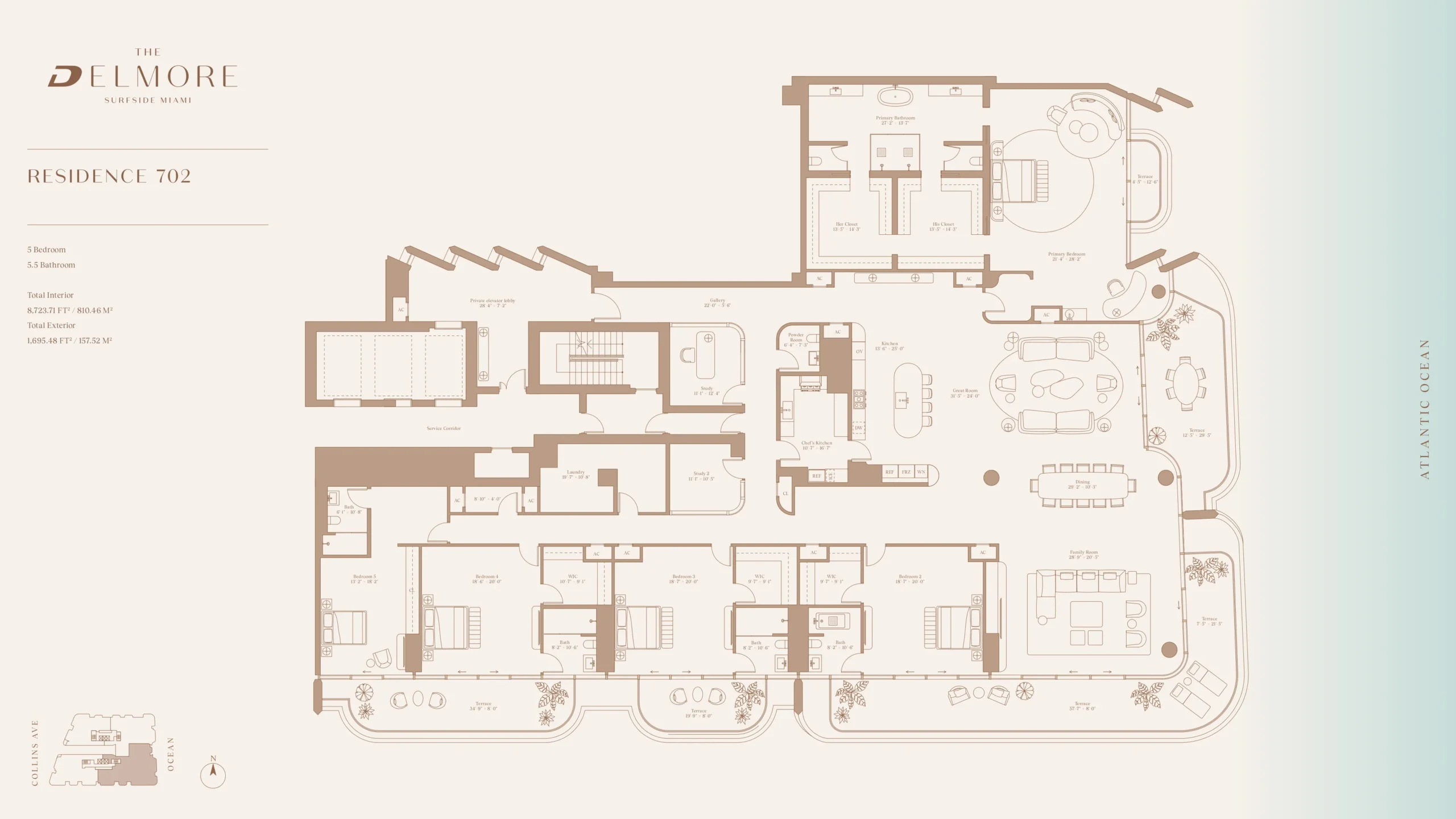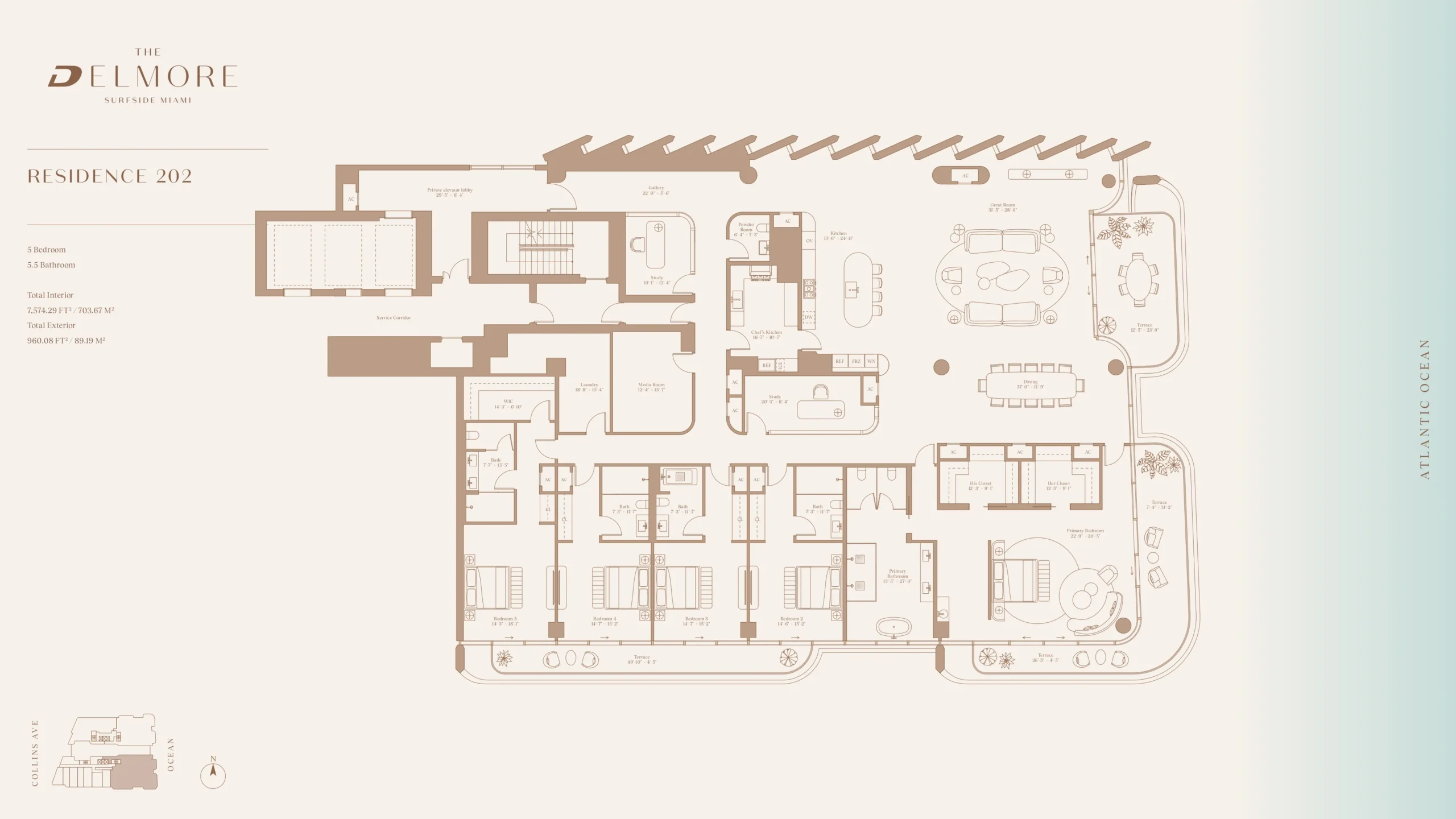 Ubicación privilegiada frente al mar: En el exclusivo “Triángulo de los multimillonarios”: Surfside, Bal Harbour e Indian Creek Village.