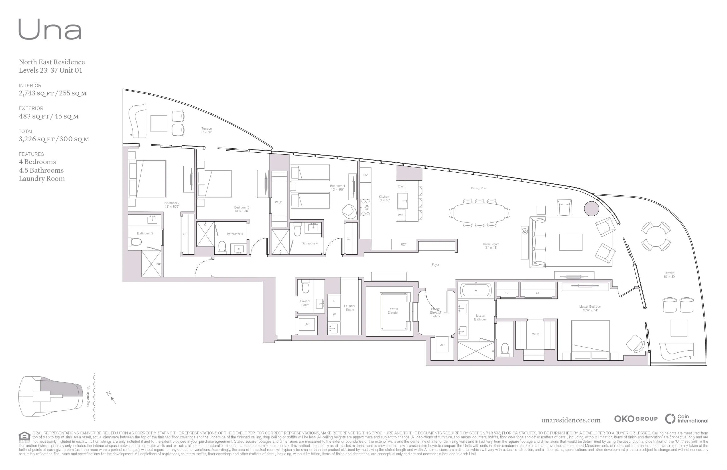 El diseño curvo y elegante de Una Residences redefine el lujo en Brickell. Su arquitectura distintiva, creada por Adrian Smith + Gordon Gill Architecture, ofrece una silueta inconfundible con 48 pisos de sofisticación. Ubicado estratégicamente, brinda acceso privilegiado a lo mejor de Miami, desde restaurantes de clase mundial hasta las playas paradisíacas de Key Biscayne.